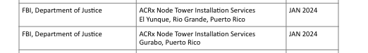 However, the only procurement records I could find from the company list the installations as being performed in San Juan and Jayuya. Both contracts are with the FBI and are collectively worth over $140,000.